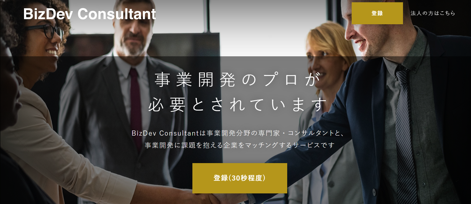 「BizDev Consultant」は、事業開発のプロフェッショナルと企業をマッチングするサービス。