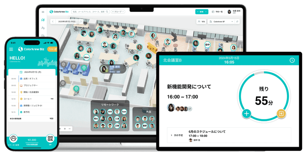 「Colorkrew Biz」は、クラウド型の会議室予約・座席管理システムです。