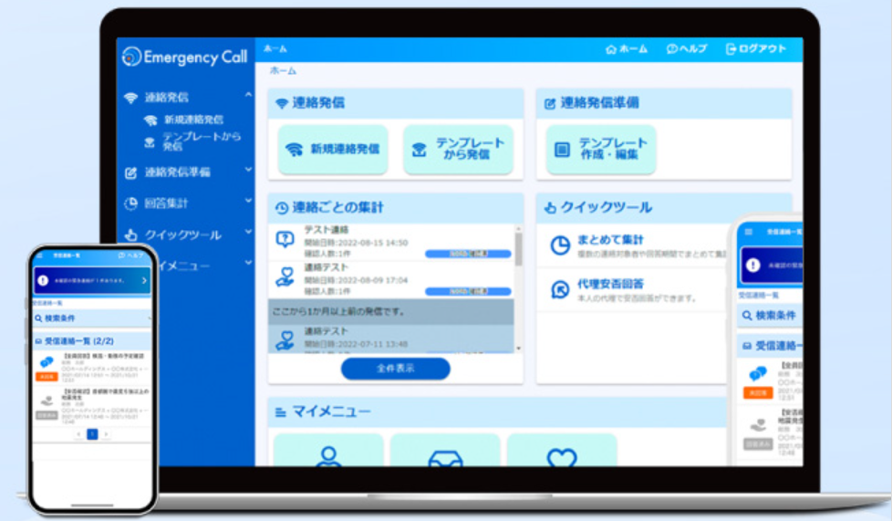 「エマージェンシーコール」は、災害発生時に社員の安否を迅速かつ確実に把握できるシステムです。