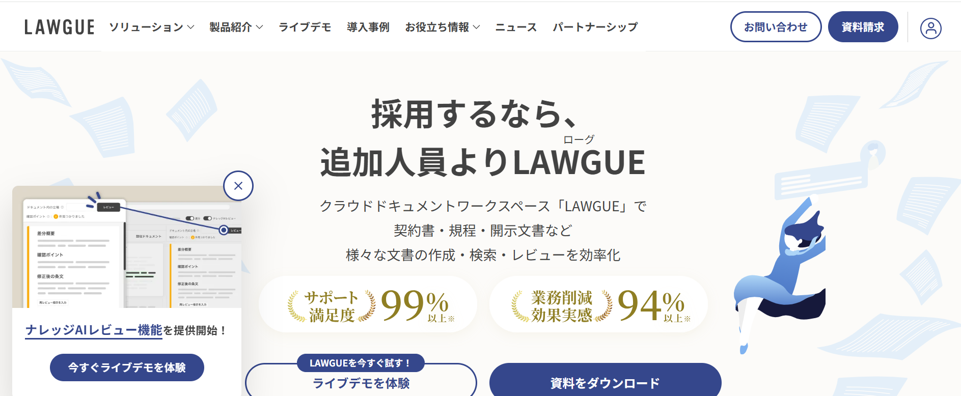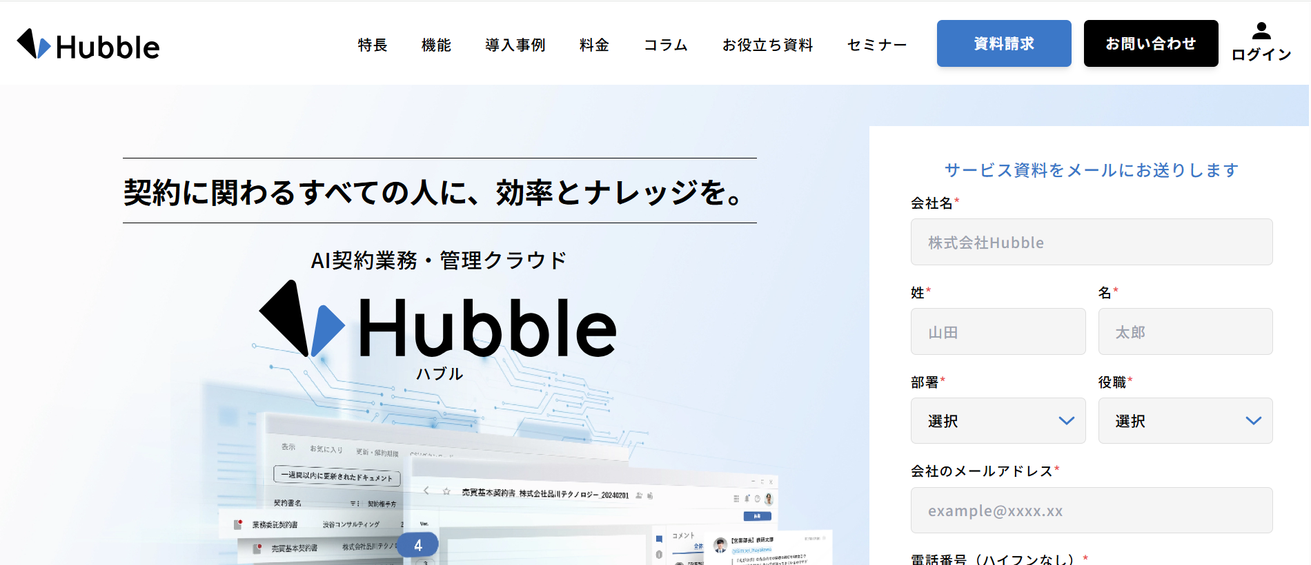 Hubbleは法務ドキュメント業務を効率化し、契約書管理の負担を大きく減らすクラウドサービスです。