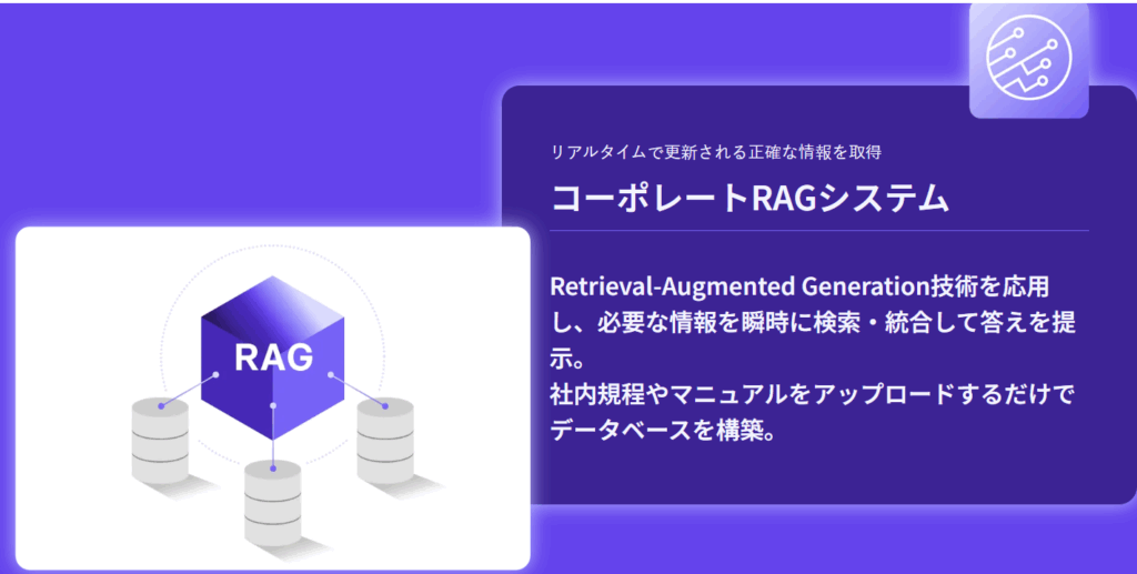 CorporateOnの大きな特長のひとつが、独自の「コーポレートRAGシステム」です。