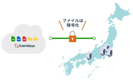 Everidaysは、企業の情報資産を守るために、高度な暗号化とアクセス権限管理を採用しています。