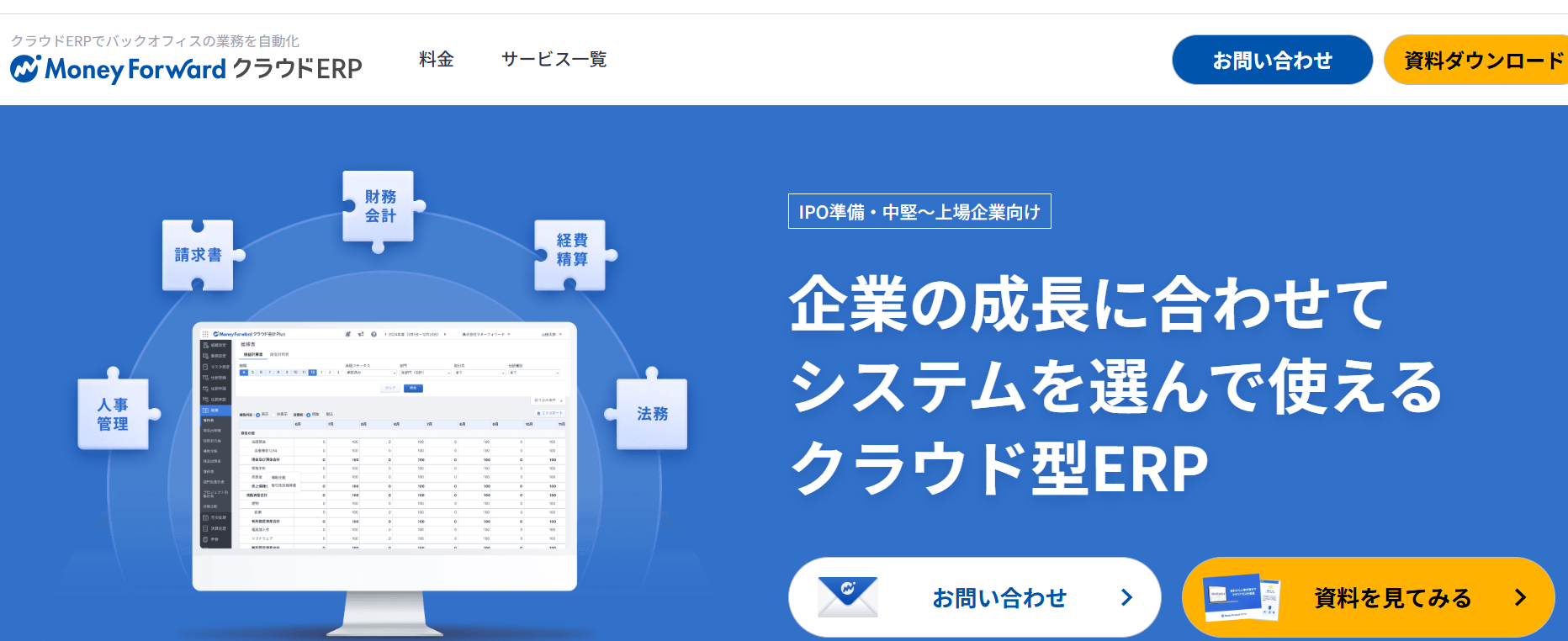 「マネーフォワード クラウドERP」は、経理・労務・人事・法務など、バックオフィス全体の業務を一元管理できるクラウド型ERPサービスです。