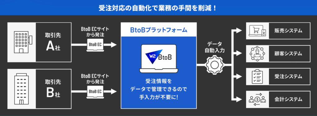 その理由は、受発注機能とEC構築機能を一体化し、取引データや商品管理を1つのシステムに統合しているためです。