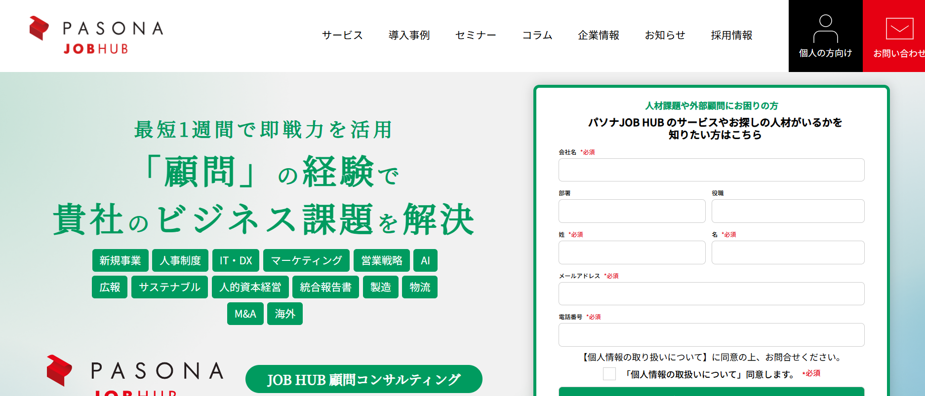画像出典元:「JOB HUB 顧問コンサルティング」公式HP