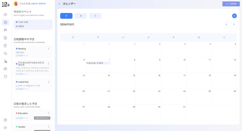 「テンプラス(AI日程調整ツール)」は、AIによる日程調整機能を基盤に、営業目標・タスク管理、社員・顧客情報、日報を一元管理可能なプラットフォームです。