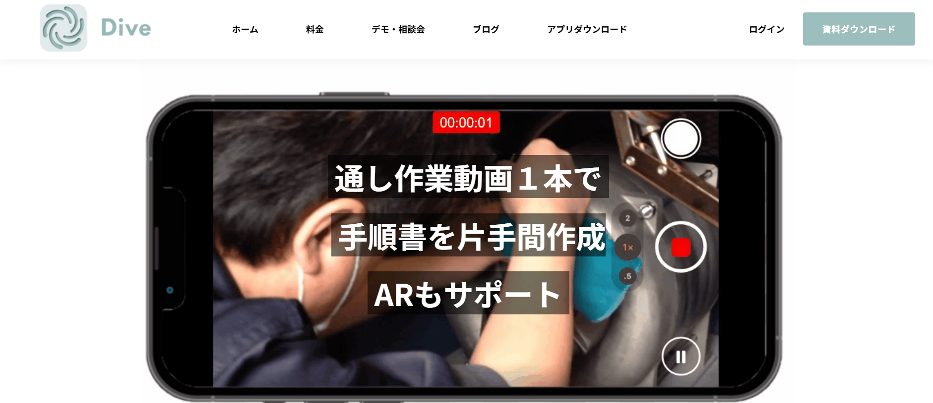 はじめに 現場でのノウハウ継承が難しい、マニュアルが読まれない、技術伝承に時間がかかる──。そんな悩みを抱える企業に今、注目されているのが「動画マニュアル」です。中でもSaaS型の動画マニュアル作成ツール「Dive」は、誰でも簡単に使えて、現場にフィットしたマニュアルを作成できると話題を集めています。 今回は、「Dive」がなぜ多くの現場に選ばれているのか、